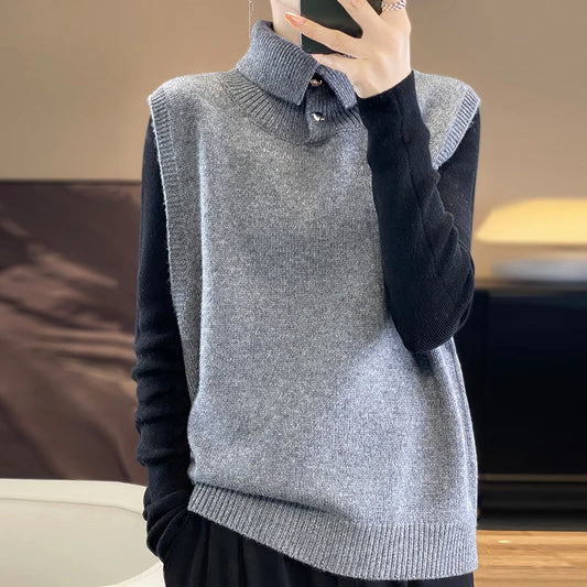 Vintage Knit Turtleneck Vest for Women