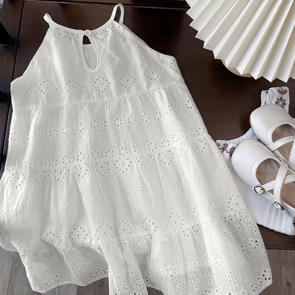 Bear Leader – Beiges Plisseekleid aus Spitze für Mädchen